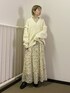 ラメのプリントがかわいいワンピース! つけ襟を外して首元すっきりと。 今の時期ならニット重ねがいいですね◎ お気に入りの白のワントーンに🏳️ Instagram ⇒ @mmm_iz_