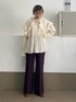 大きいフリルと袖までふわっとした 形がかわいいブラウス🐩春先取り! 綺麗なシルエットのフレアパンツと 大人っぽく合わせました◎ Instagram ⇒ @mmm_iz_