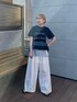 1枚で着映えするデザインTシャツ❕ 落ち着いたNAVYなので ボトムは白で爽やかに合わせました◎