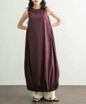 裾のバルーンシルエットが かわいいワンピース! シャカシャカ素材で夏でもサラッと 着られます◎