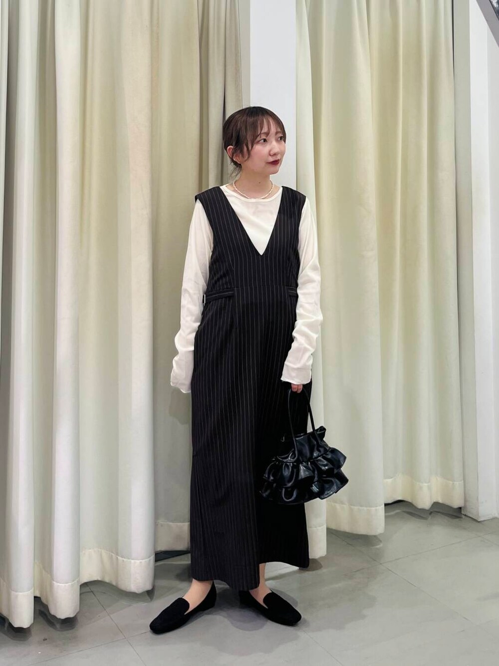 シルエットのキレイなジャンパースカート。 インナーはスッキリめのトップスを入れて 女性らしい雰囲気で着てみました☝️ ジャケットを重ねたり インナー次第でフォーマルな印象にも◎