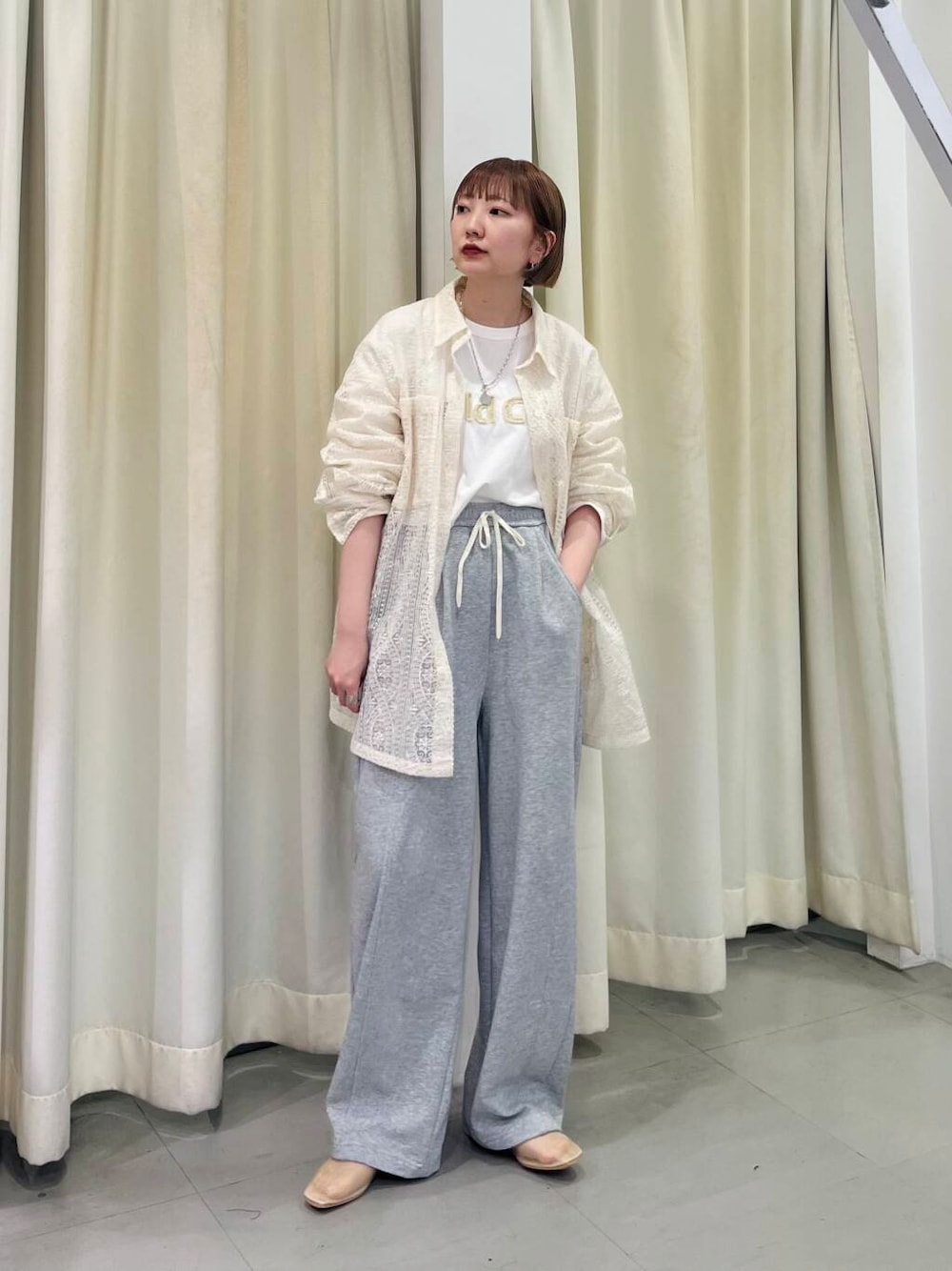 店頭でも大人気のシアーシャツ。 ハリのある刺繍デザインがかわいいです☺️ カジュアルにロンT✖️スウェットパンツを 合わせてみました。 このパンツはカーブデザインがポイント! スウェット素材でもカジュアルになりすぎず 大人っぽくすっきり見せてくれます🥹