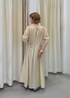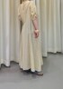 シルエットのキレイなワンピース。 袖のギャザーや前のタックが シンプルながらも映えるデザインです🙂↔️ ペチコート付きなので1枚でももちろん◎! 私はデニムをチラ見せさせてカジュアルに✨