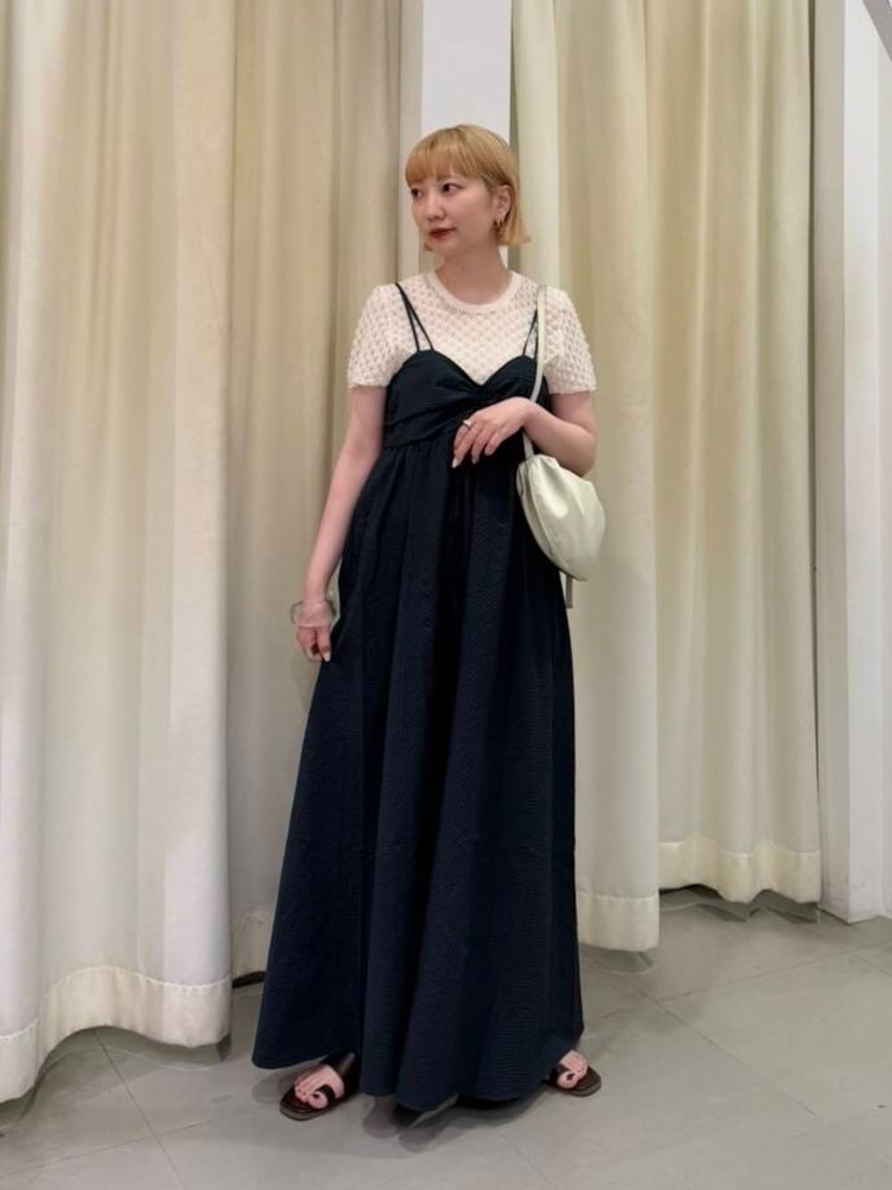 リアルバイしたキャミワンピース👗 サラリと夏に重宝する素材感になっています! 丈感の調節も◎ あえてギリギリで着たくて長めに設定して着ました! NAVYで大人っぽい印象に✨ コンパクトニットをインしてスッキリと🫰🏻