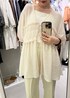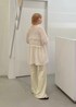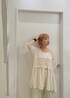 ゆるっとシルエットのかわいいチュニック。 前リボンが女性らしさをプラスしてくれます! 落ち感がありボリュームが出ないのも嬉しい✨ 足を綺麗に見せてくれるフレアパンツと スッキリ合わせました◎ サラリと素材なので夏にもぴったりです🫰🏻