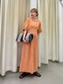 ウエストがスッキリ見えるワンピース! 袖の絞りも調節出来るのでふんわりさせて着てます◎ 小物によってはキレイめにも使えます! 裏地なしでもこの色だと透けないので 暑い夏もサラッと1枚で着やすいですよ☀️