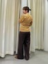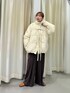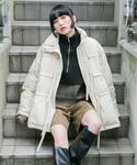 人気の中綿ジャケット! リボンデザインがかわいいです◎ 今回は合わせやすいIVORYを💡 スッキリめのカーディガンとゆるっとパンツ👌🏻 ブラウン系のトーンで大人っぽめに。