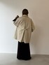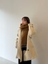 大きい襟とすっきり見えるシルエットの ミドルコート。 後ろから見た形も広がりすぎず綺麗です! 小物も合わせて冬らしく🧣 配色がかわいいマフラーは 巻くだけでポイントになりますね!