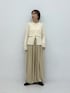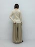 ブークレ素材で着心地の良いニット。 サラリと春先まで使えます🙂↕️ スッキリ見えるシルエットなので ボトムにはボリュームのあるものを 合わせました!足元はスッキリと◎