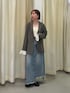キレイめでも使えるジャケット。 袖のフリルが存在感のあるデザインです◎ カジュアルな雰囲気で デニムスカートを合わせてみました。 ボトムやインナーによって オンオフ兼用で使えるのが嬉しいです🙂↕️