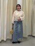 ウエストのシャーリングデザインが ポイントのブラウス。 広がらずスッキリ見せてくれます! 上品な印象でも使えますが 春らしくデニム合わせにしてみました◎
