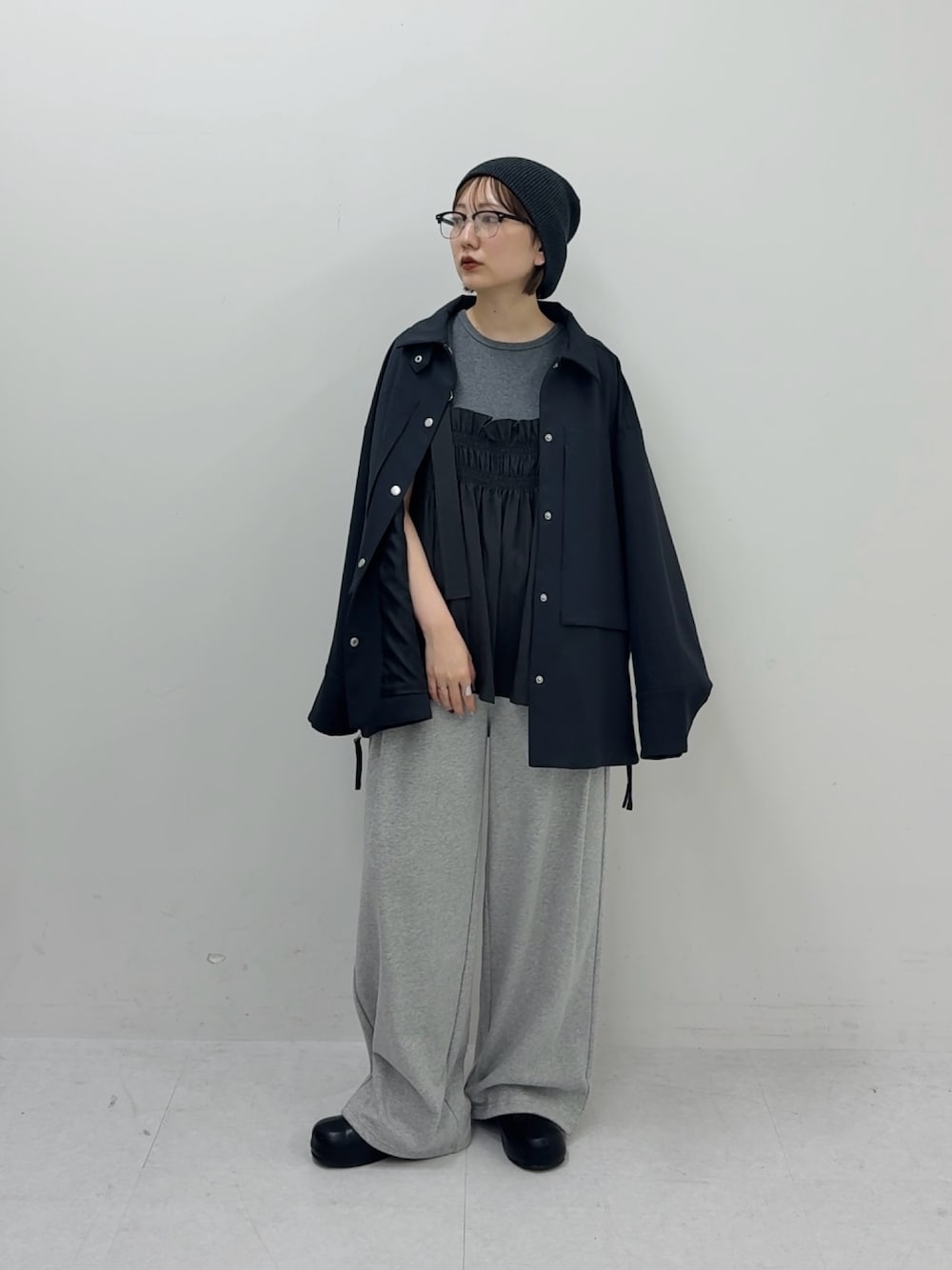かわいらしい雰囲気のビスチェを グレートーンで合わせてみました! 少しモードな印象に、、◎ スウェットパンツやゆるっとアウターで ラフに着つつも 小物合わせはしっかりと!
