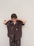 刺繍プリントデザイン🪡 セットアップで着るとこなれ感♩ メンズライクなオーバーシルエットです◎ サラリと着られて 夏に活躍する予感です🙂↕️🙂↕️