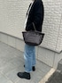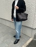 ブラック系のその他アウター、ブラック系のブーツを着用したレディースの秋コーディネートの2枚目の写真