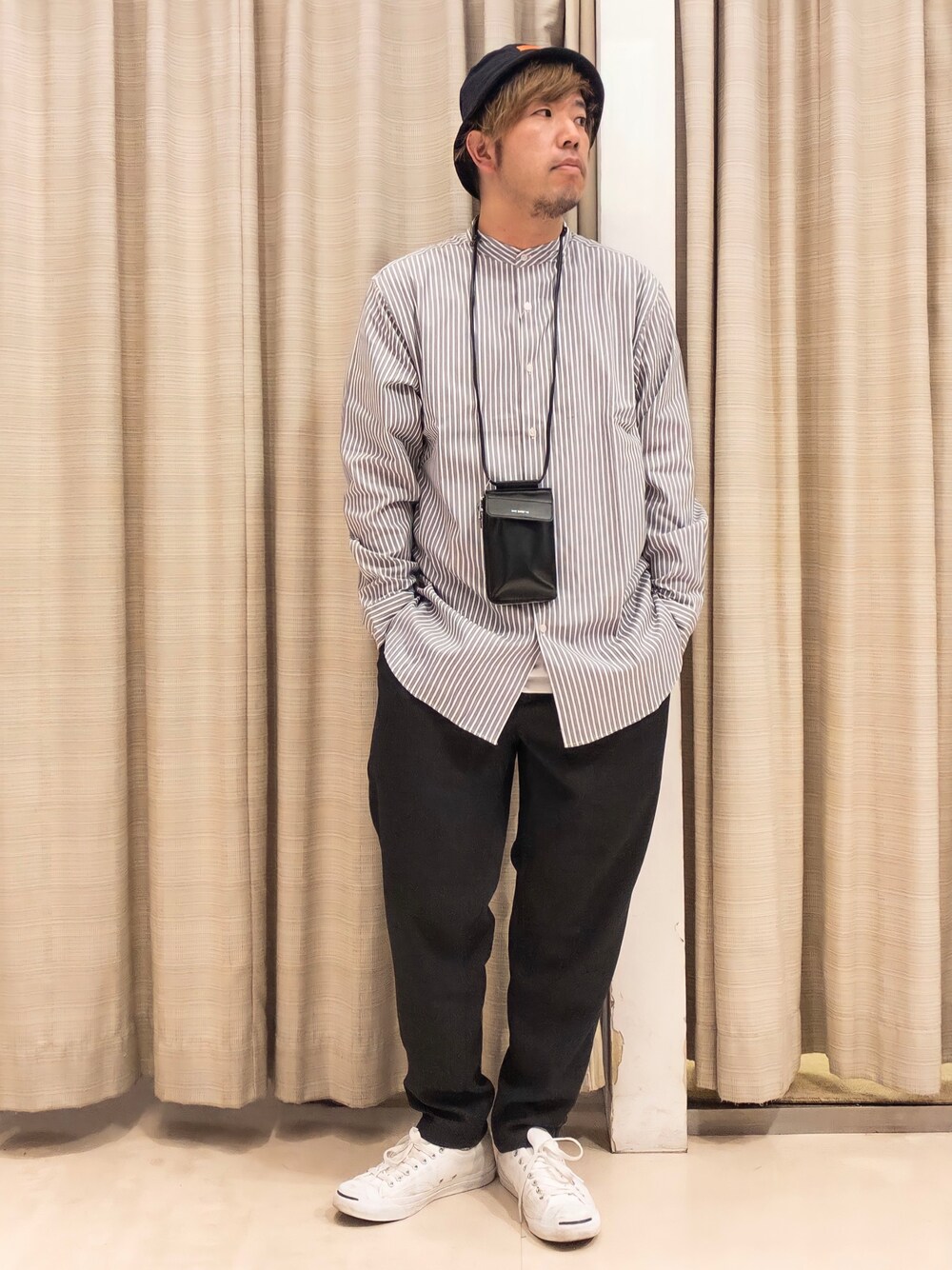 こんばんは♪ 閲覧いただきありがとうございます😊 今回はバンドカラーシャツを使用したカジュアルコーデ。シャツはワンサイズあげてシャツのキレイ目な印象を着崩しました! よろしければいいね👍フォロー🤲宜しくお願い致します!
