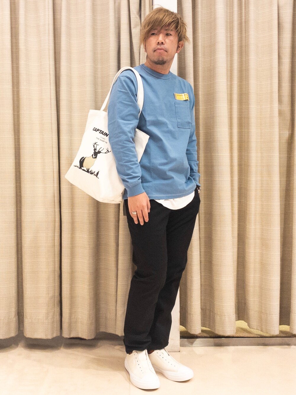 こんばんは♪ ご覧いただきありがとうございます😊 今回はライトブルーのUSAコットンTシャツをメインにした春のカジュアルコーデ👕 キャプテンスタッグとのコラボトートバックも印象的です✌️ よろしければいいね👍フォロー🤲宜しくお願い致します🙇♂️