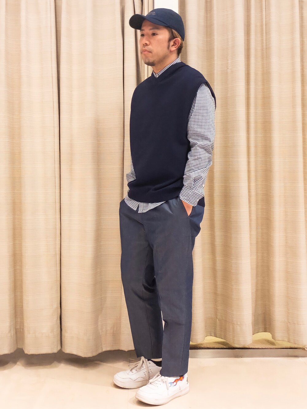 こんばんは♪ ご覧いただきありがとうございます😊 今回はネイビーニットベストをベースにワントーンで纏めたカジュアルコーデです✌️ よろしければいいね👍フォロー🤲お気に入り登録✌️宜しくお願い致します🙇♂️