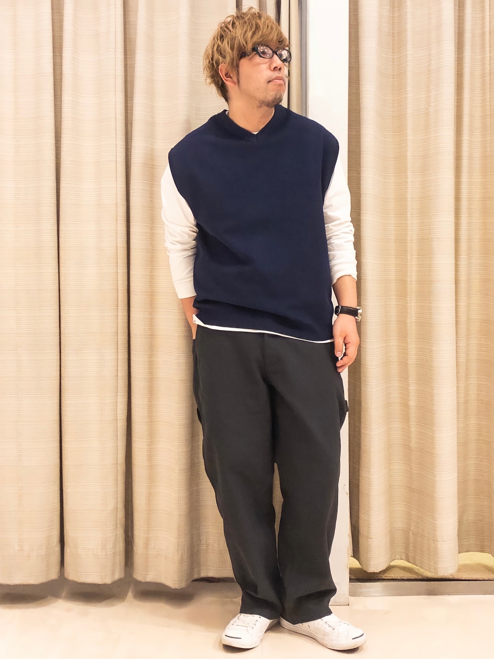 こんばんは♪ ご覧いただきありがとうございます😊 今回はニットベストを使ったリラックスコーデ🦺です。 シルエットが今期らしいルーズシルエットですが 全体をモノトーンで抑えているので落ち着いた大人な雰囲気を出しました✌️ よろしければいいね👍フォロー🤲お気に入り登録✌️宜しくお願い致します🙇♂️