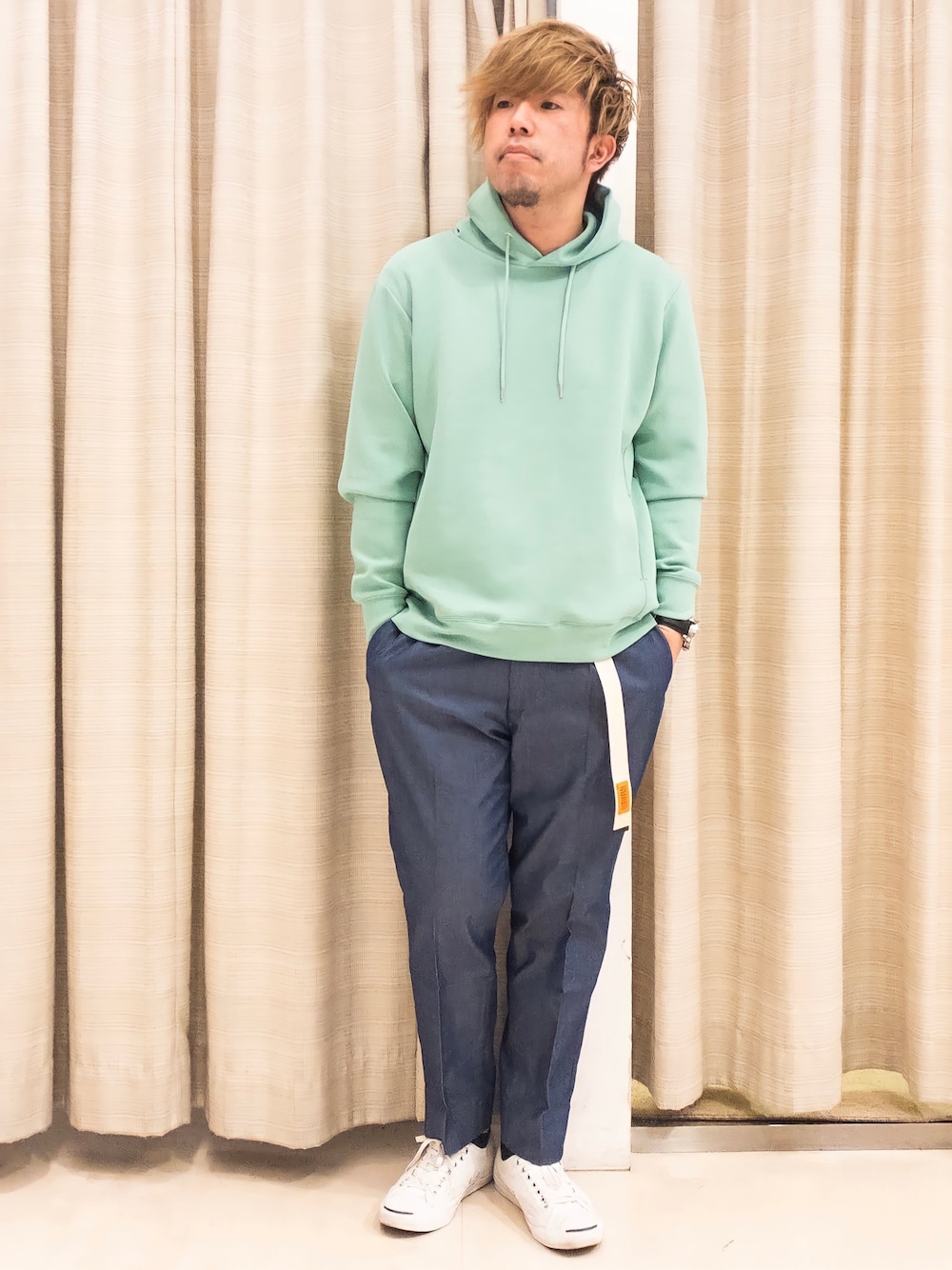こんばんは♪ ご覧いただきありがとうございます😊 今回はライトグリーン🟢のパーカーにデニムを合わせてみました✌️ フロートダンボールという素材を使用しているプルオーバーパーカーは伸縮性が高く、なにより着心地が抜群に👍 デニムにフランスカンベルトを合わせた春🌸のカジュアルコーデ👕です✌️ よろしければいいね👍フォロー🤲お気に入り登録✌️宜しくお願い致します🙇♂️