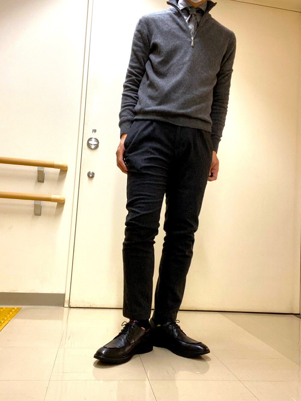 こんにちは✨ いつも観覧・いいね・お気に入り ありがとうございます😊 先輩に頂いた3脚を初めて使って見ました🎥 今日のテーマは、全身グレーマンで足元は、ブラックのUチップで引き締めて見ました