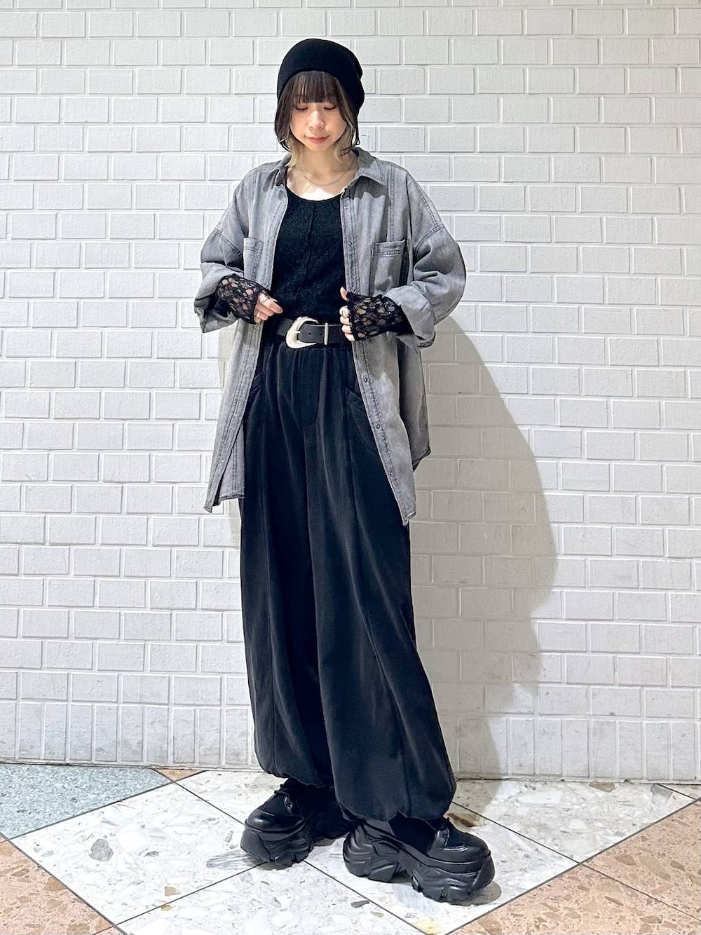 matsu(PAGEBOY 池袋サンシャインシティ)のブーツ「レースアップソックスブーツ 【3サイズ展開・厚底なのに軽量】」を使ったコーディネート