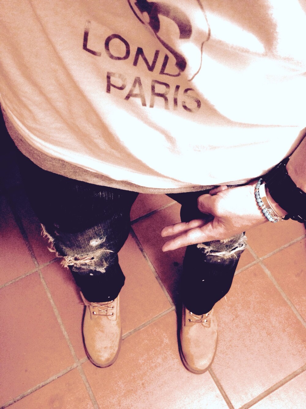 Denim:EDWIN デニムは自分でダメージ加工してみました👖✂️ 分かりにくくてすみません😅🙏 明日はやっと原宿で秋冬物買いに行ける😘 そのまま直行で予備校🏃💨