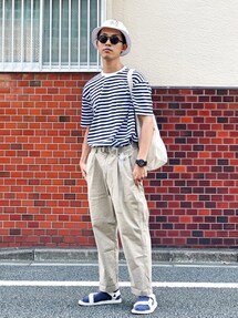ゆうげんのTシャツ/カットソー「オーバーサイズボーダーTシャツ」を使ったコーディネート