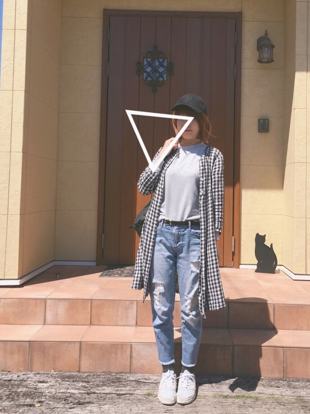 このチェックワンピの着方を誰か教えてください 😂 靴下は見えないやつのが良かったですねっっ
