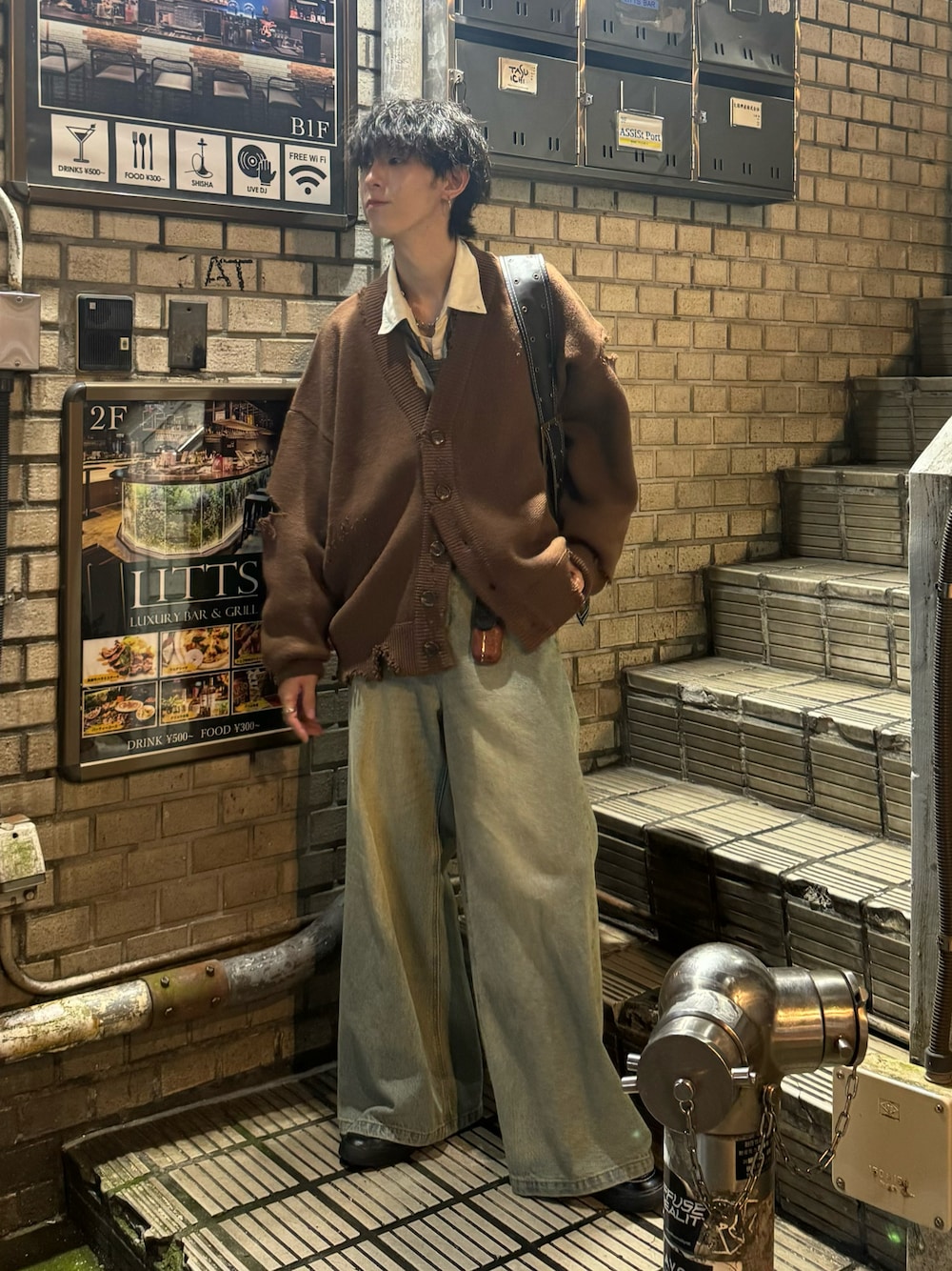 ともき / 畳屋さんのカーディガン/ボレロ「【日本別注】クレイジーダメージ ヘビーウェイトオーバーニットカーディガン KSHD1719【MASONPRINCE】」を使ったコーディネート