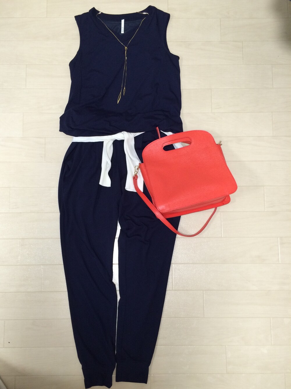 上下別々に着られるセットアップです☻ 赤のバッグを差し色に^o^