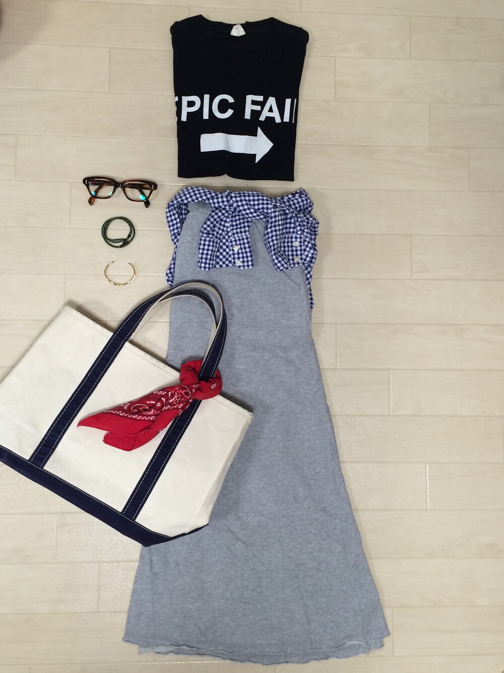古着のロゴT✖︎マキシスカート☻ お休みの日にフラットサンダルと合わせたい^o^