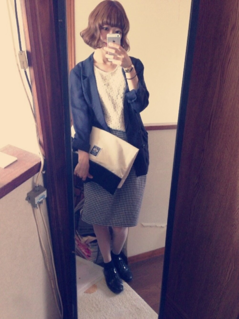 ぽよんぬのスカート「!KBF ギンガムチェックスカート」を使ったコーディネート