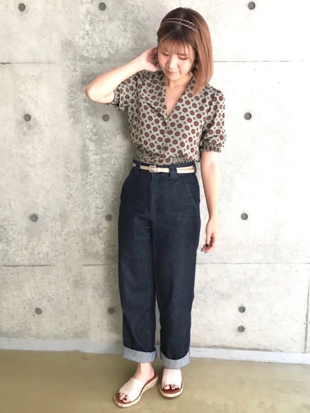 manaのシャツ/ブラウス「花柄ショート丈シャツ」を使ったコーディネート