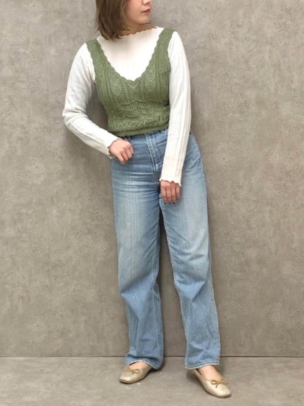 ☀︎☁︎ᴳᵒᵒᵈ ᵐᵒʳⁿⁱⁿᵍ☁︎ ꪔ̤̫ いつもご覧いただき ありがとうございます🐥 ちょっと甘めなデニムコーデ✯ 透かし編みニットビスチェを レイヤードしてみました🍀 ビスチェを合わせるだけで 普段のシンプルなコーデも 良い感じになるから良きです✌︎ いいね!お気に入り♡フォロー ☺︎よろしくおねがいします
