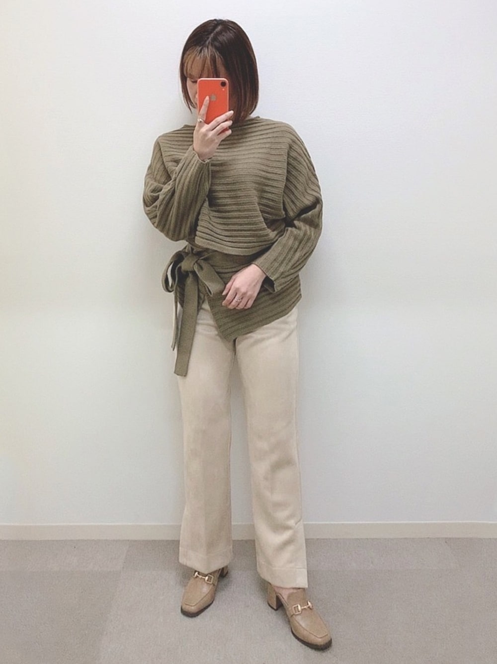 manaのニット/セーター「ウエストデザインリブニット」を使ったコーディネート