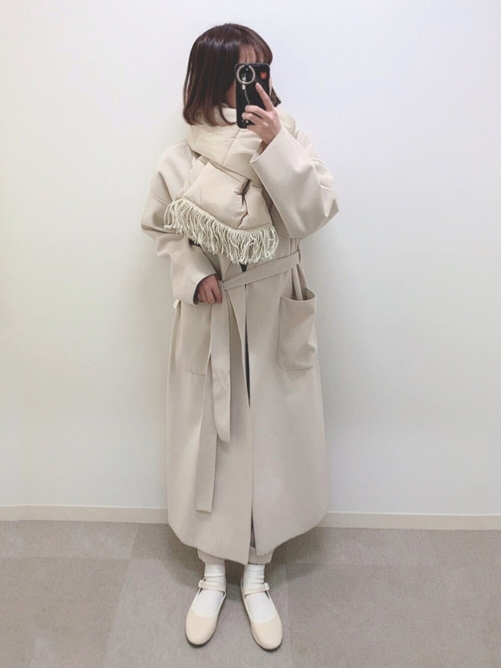 manaのマフラー「キルティングフリンジ大判ロングボリュームマフラー」を使ったコーディネート