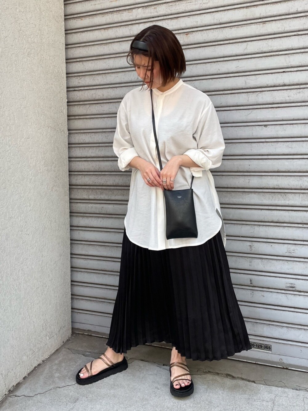 manaのシャツ/ブラウス「スタンドカラーミドルシャツ」を使ったコーディネート