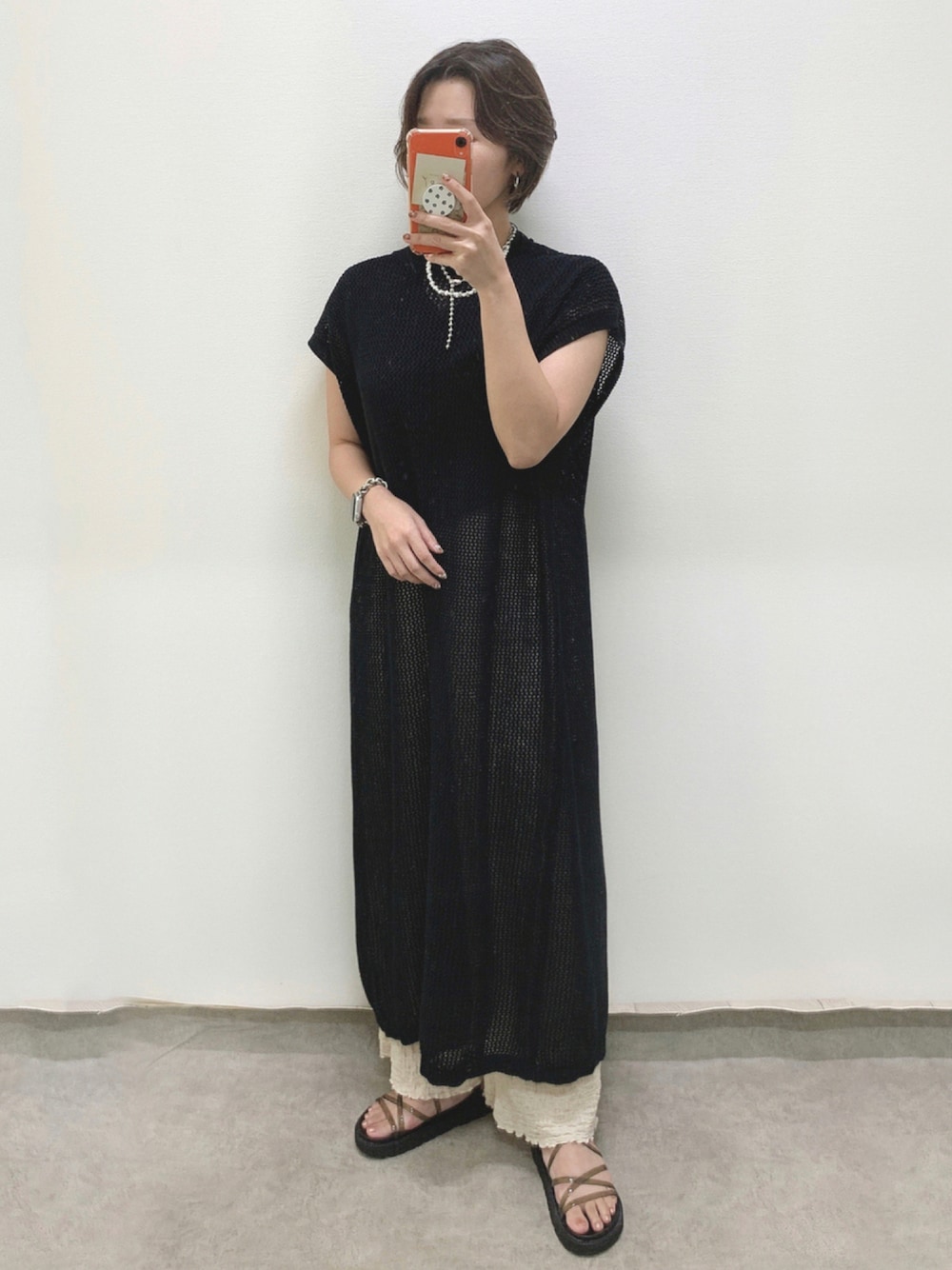 manaのワンピース「メッシュニットワンピースSS 952206」を使ったコーディネート
