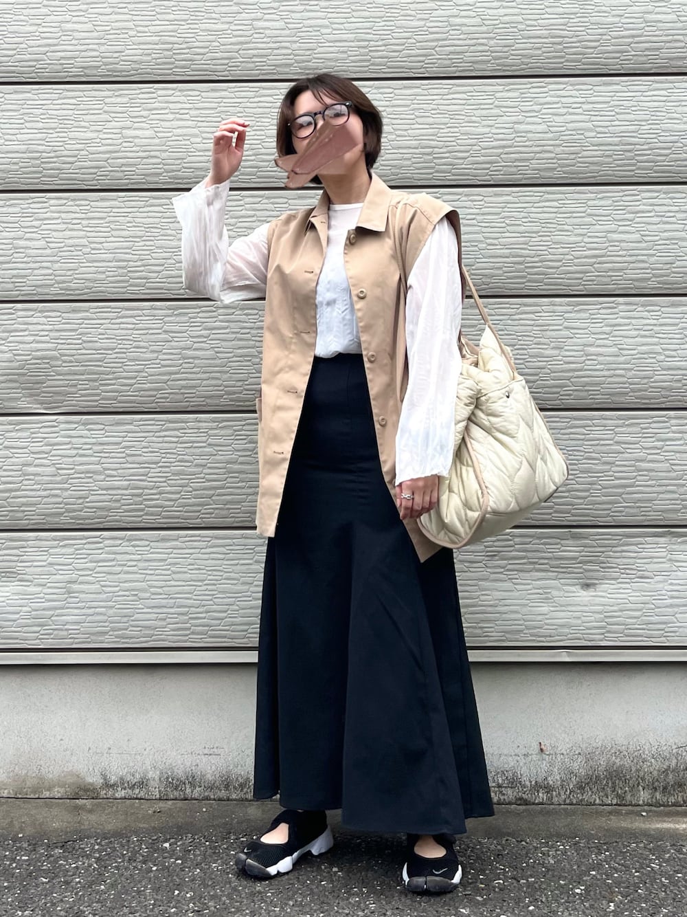 manaのトートバッグ「【マザーバックとしても大活躍!】ポケット付き2wayリネンライクビッグトートバッグ」を使ったコーディネート