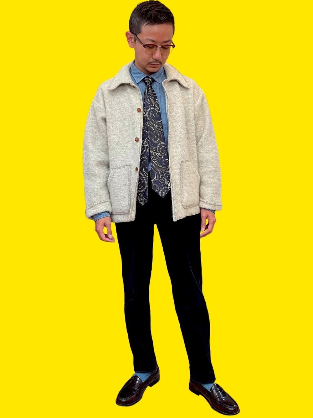 ブルー系統でシックに決め込み ウールジャケットで抜け感を演出すマックス氏のヨーロピアンコーデ