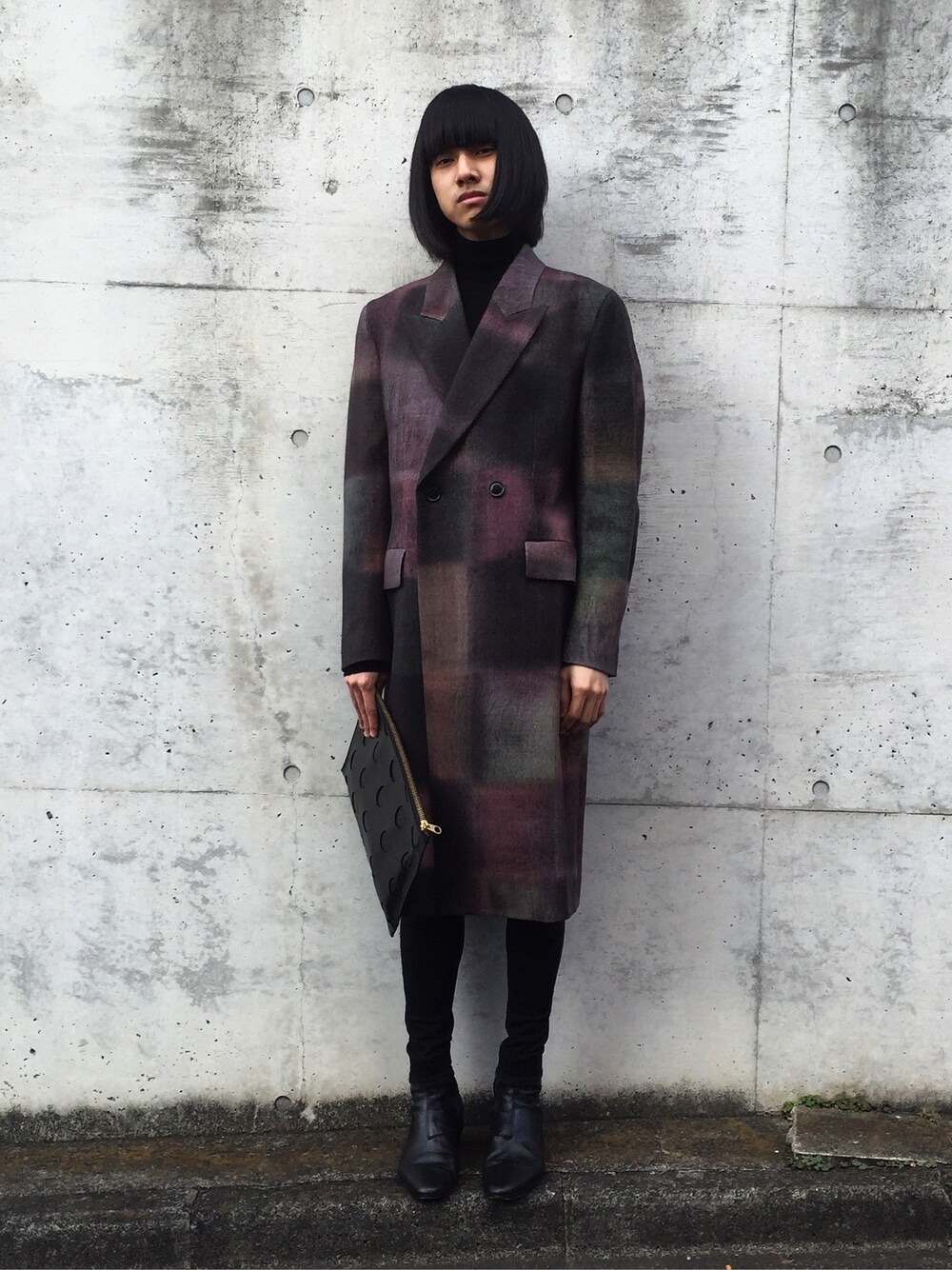 MAKUSU NISHIYAMAのチェスターコートを使ったコーディネート