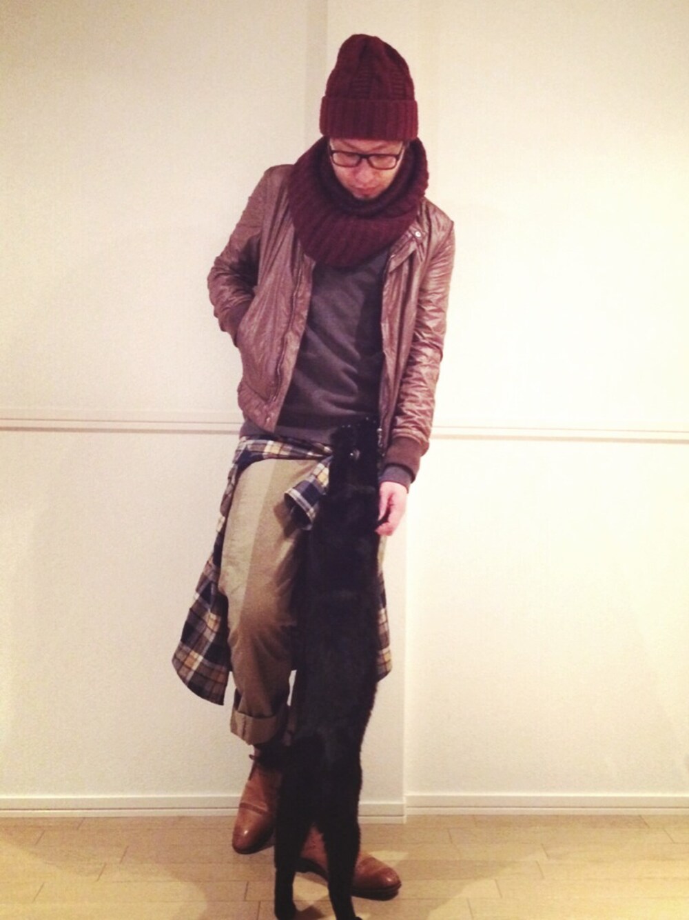 暖色系でのコーデ。 と言うか、時間なくあえなくorz 案外今日、あったかい。 ゴハン前だから、ねだるねだる。