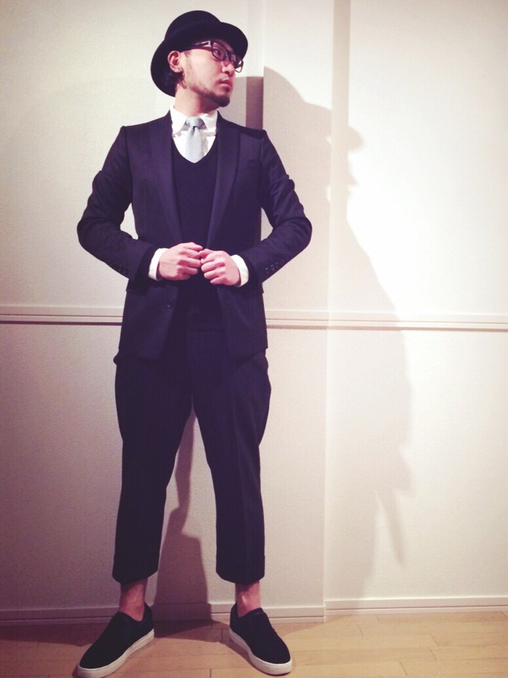 max222のスーツパンツ「ピンストライプのスラックスパンツ。」を使ったコーディネート