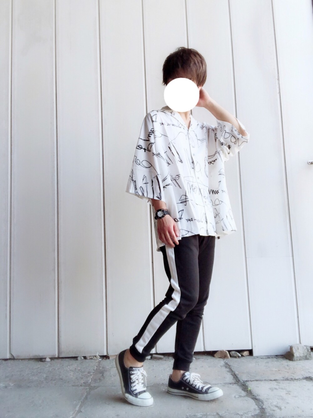 モノトーンのストリートコーデ😌 このシャツマジで可愛い😆