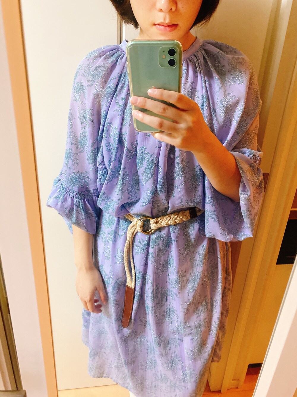 腹痛でおなか締めたくなくて、ゆったりワンピース💜英会話頑張ったら終わり今日は閉店ガラガラ~