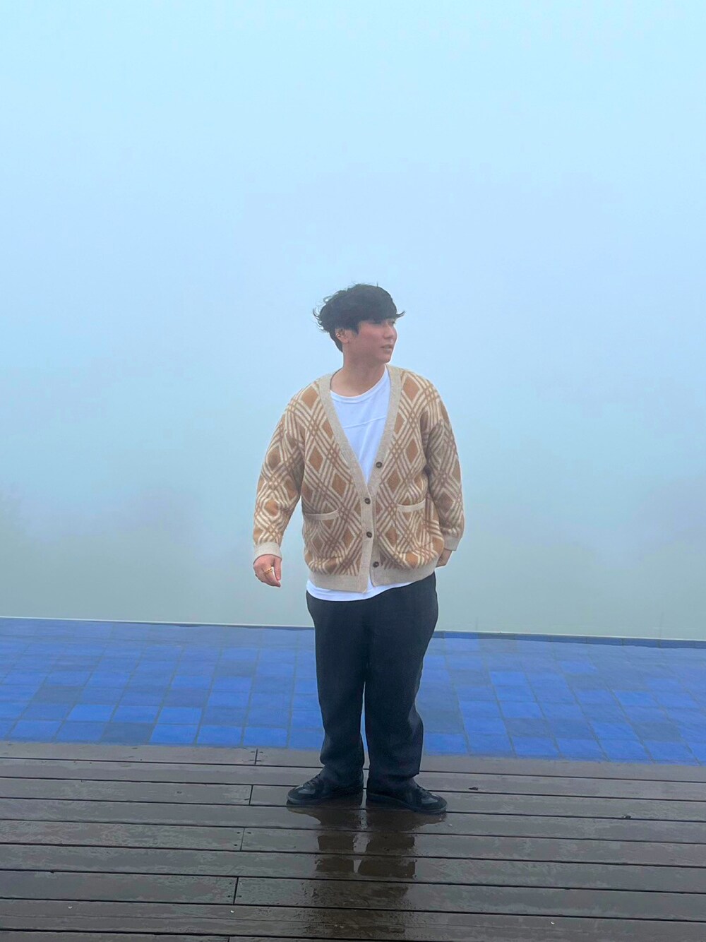 シンプルなシャツとパンツにカーディガンを合わせてみました (カーディガンはレディースです)