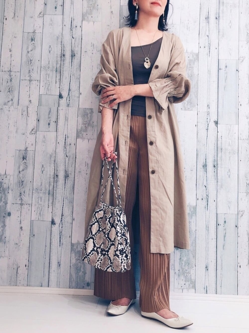 リネンブレンドガウン着回し😊✨少しずつ暖かくなってらきた今の時期にピッタリ👌購入した時よりも、今、更に値下げされてる💦💦