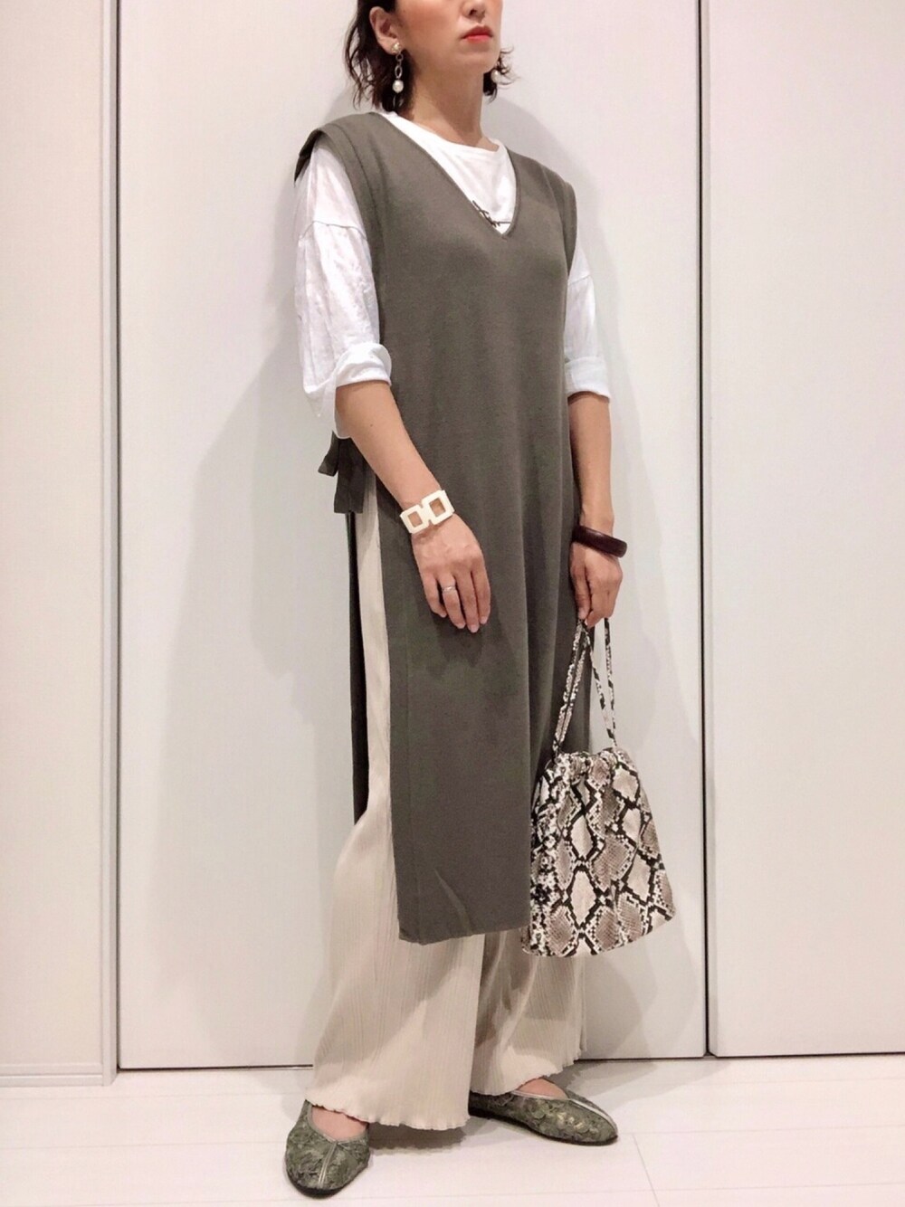 おnewのチャイナシューズ✨ 落ち着いたグレーがとっても秋らしい靴です❣️ 上下Shimamuraに合わせてみました🤎