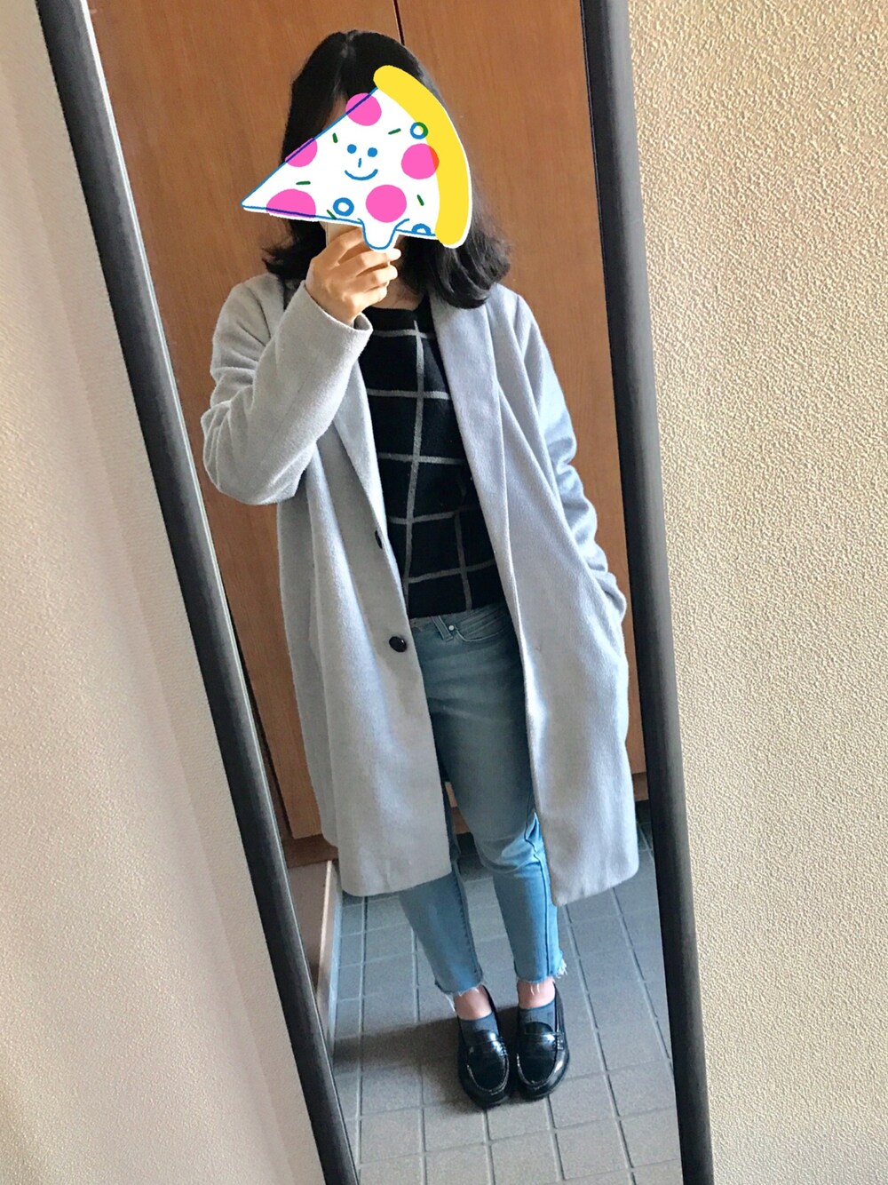 3投稿目! あんまり着なくなってたニットを取り出して見たら結構イケた!他のウェアが淡い分、ニットの黒がいい感じに際立ってる✨ ローファーは高校の時のだけど笑笑 良いベルトが欲しいな_(:3」z)_