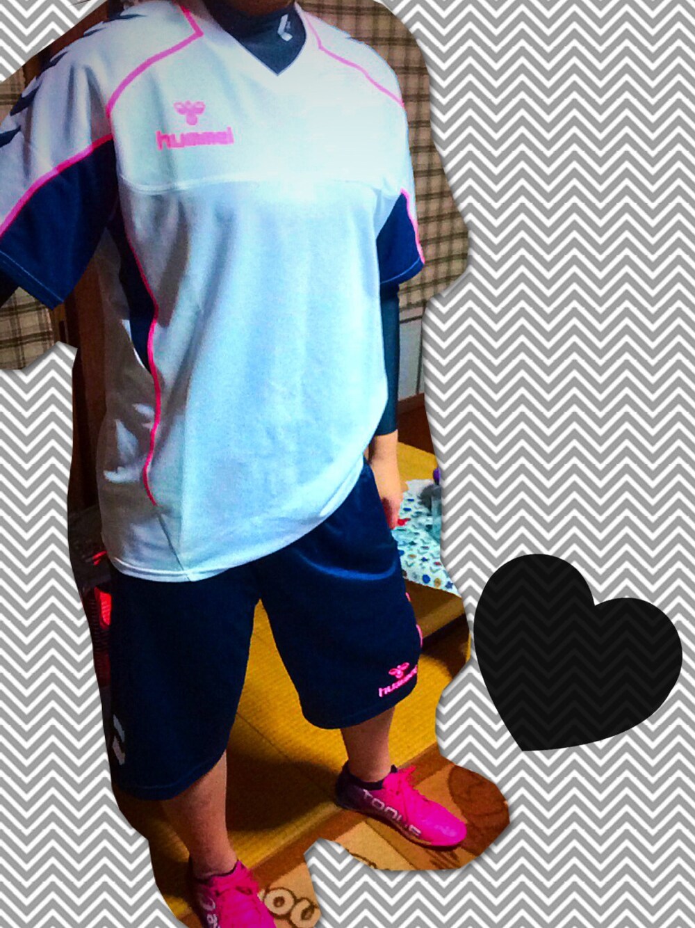 ネイビー×ピンクの組み合わせにハマってて、 特にスポーツ用品はテンションUP⤴︎♡ 差し色=ピンクがアツい! フットサル的コーディネートですな。